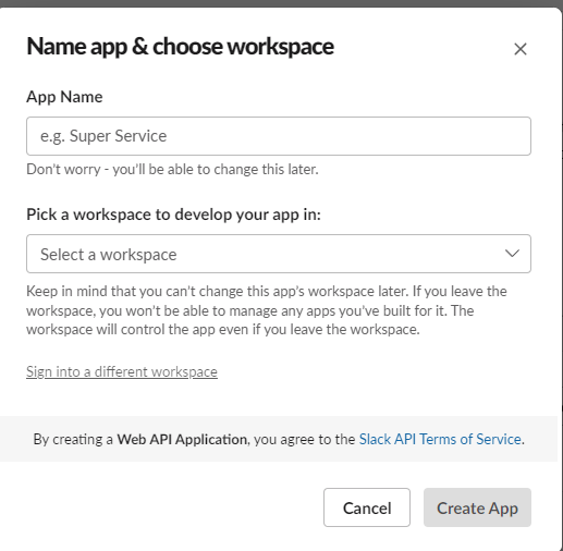 3. 여기서 App Name과 workspace를 설정하자.