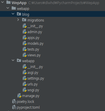 Django 프로젝트 생성한 뒤의 모습이다.