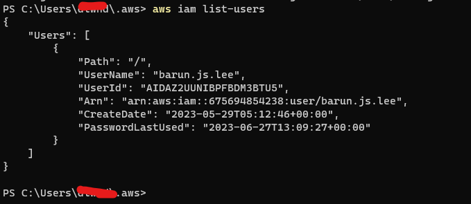 키를 만들었고 키를 등록해서 aws iam list-users 명령어를 딱 치는 순간! 다음과 같은 에러를 만났다.