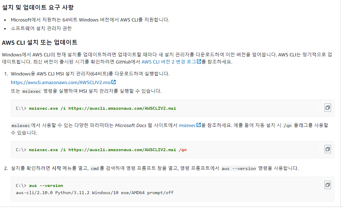 - https://docs.aws.amazon.com/ko_kr/cli/latest/userguide/getting-started-install.html