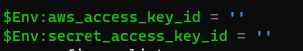 내 경우에는 언제 등록했는지는 모르겠는데 환경변수로 access_key_id 가 test로 저장되어 있었다.