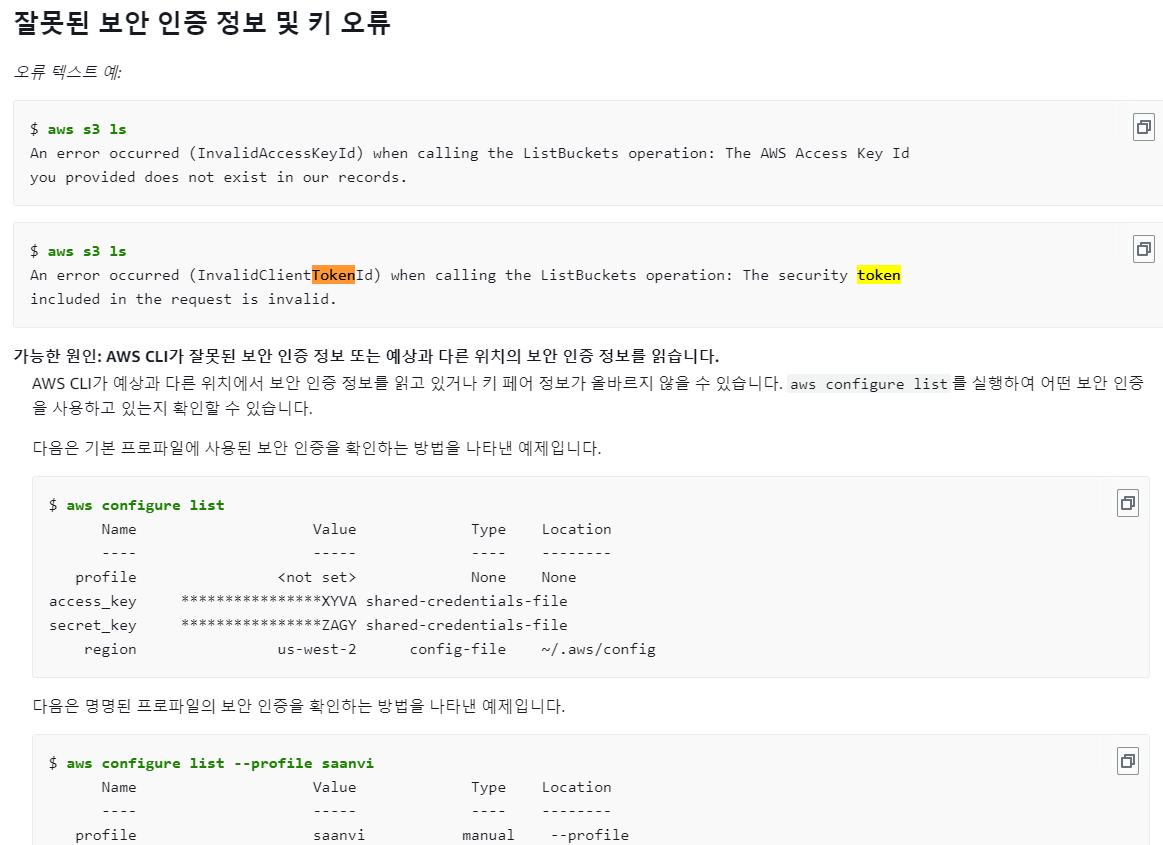 키를 만들었고 키를 등록해서 aws iam list-users 명령어를 딱 치는 순간! 다음과 같은 에러를 만났다.
