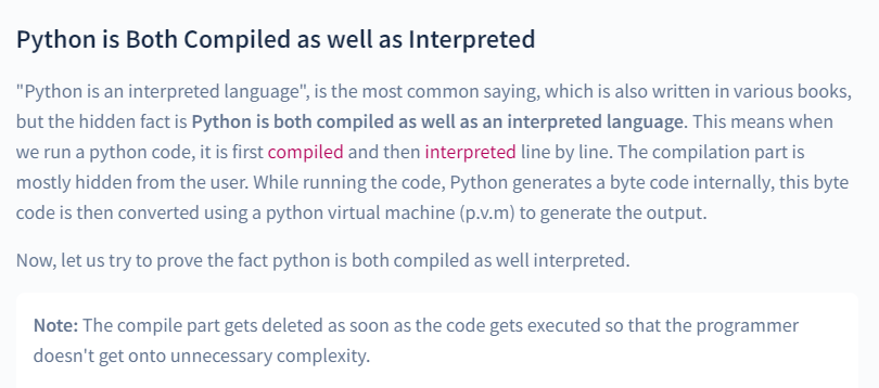 이와 관련해서 숩님의 블로그 글에서 참고자료를 보게 되었다.(https://www.scaler.com/topics/why-python-is-interpreted-language/)